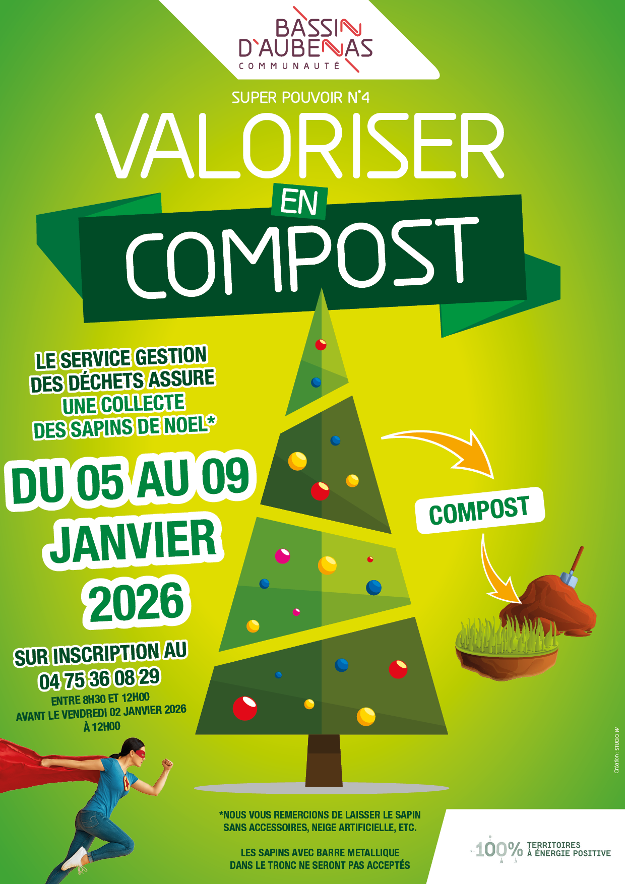 🎄 Cette année encore, vos sapins de noël pourront être collectés par la Communauté de Communes du Bassin d’Aubenas afin d’être transformés en compost.
