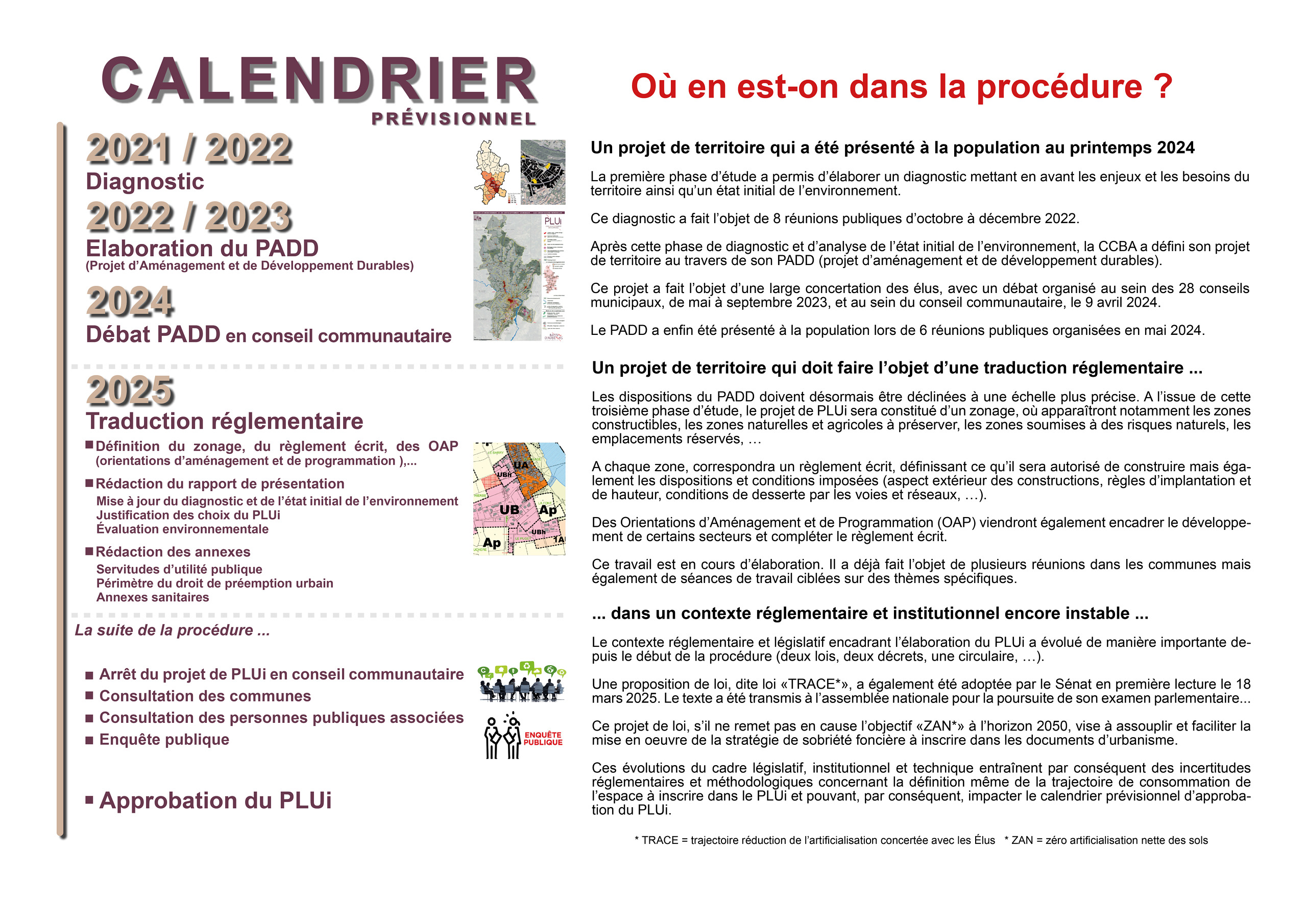 Le calendrier prévisionnel d’élaboration du PLUi